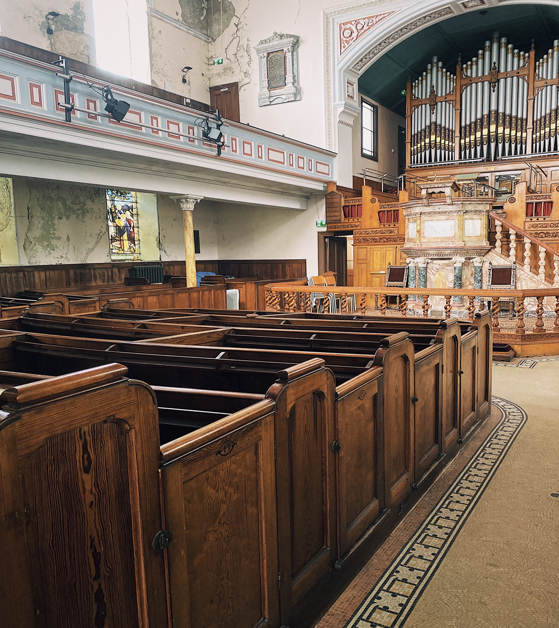 The chapel, which has exceptional acoustic qualities and a magnificent 1891 organ by Wordsworth & Co., is used regularly for concerts, recitals, spoken-word events, exhibitions, wedding celebrations, funeral services and celebrations of life.