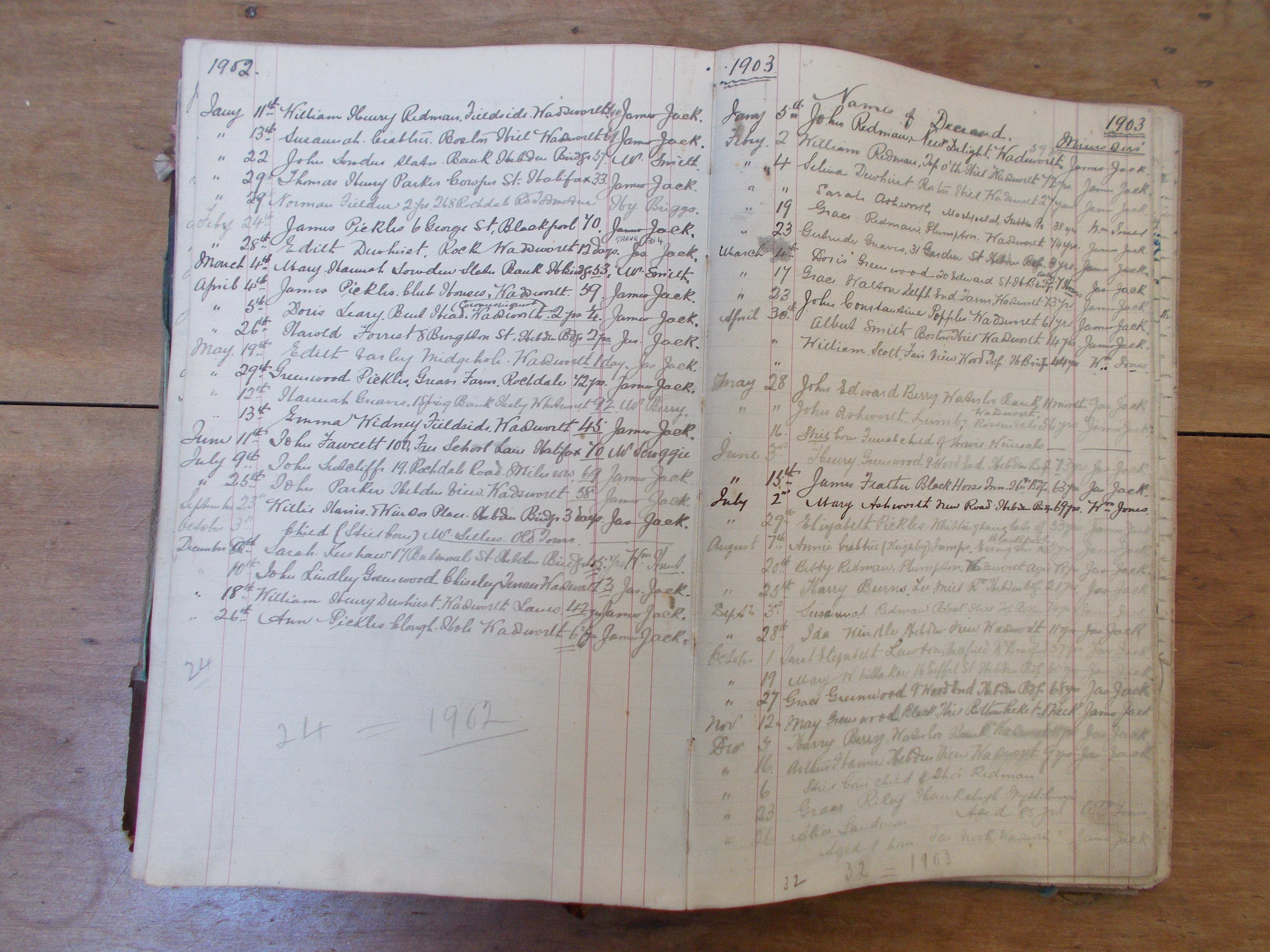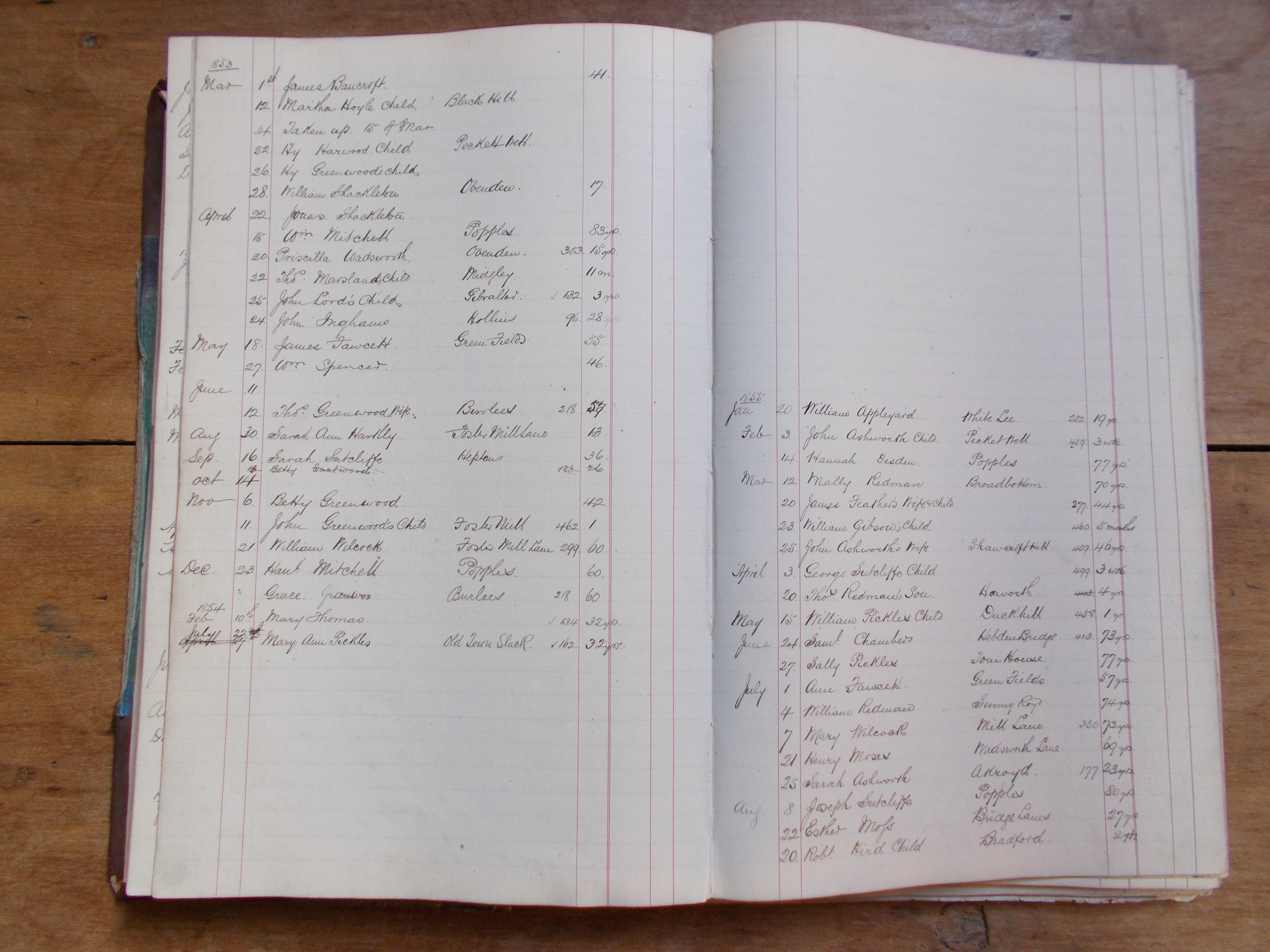 Many of the earlier entries do not give the full names of children and married women: entries such as ‘John Sutcliffe child’, ‘Jonas Bancroft wife’, ‘William Pickles daughter’s child’ are found up until around 1880.