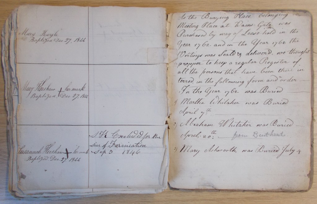 As the Burying Place belonging (……?) Meeting Place at Wains-Gate was Purchased by way of Lease-hold in the Year 1762, and in the Year 1763 the Writings was Seal’d & deliver’d, we thought propper to keep a regular Regester of all the persons that have been there interred, in the following form and order –