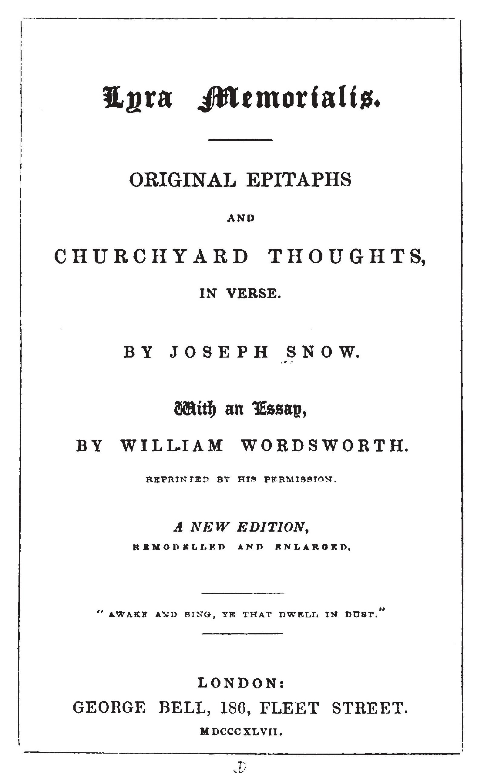 Lyra Memorialis – Original Epitaphs and Churchyard Thoughts in Verse Joseph Snow (George Bell, 1847) **