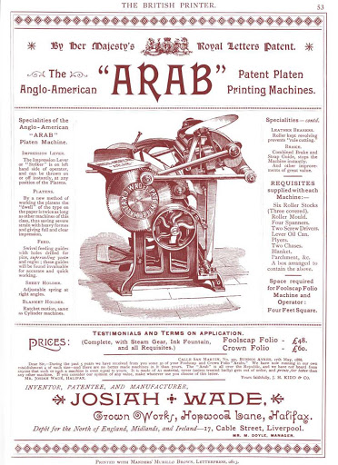 Inventor, businessman, politician, philanthropist. Mayor of Halifax. Inventor and manufacturer of the ‘Arab’ printing press.