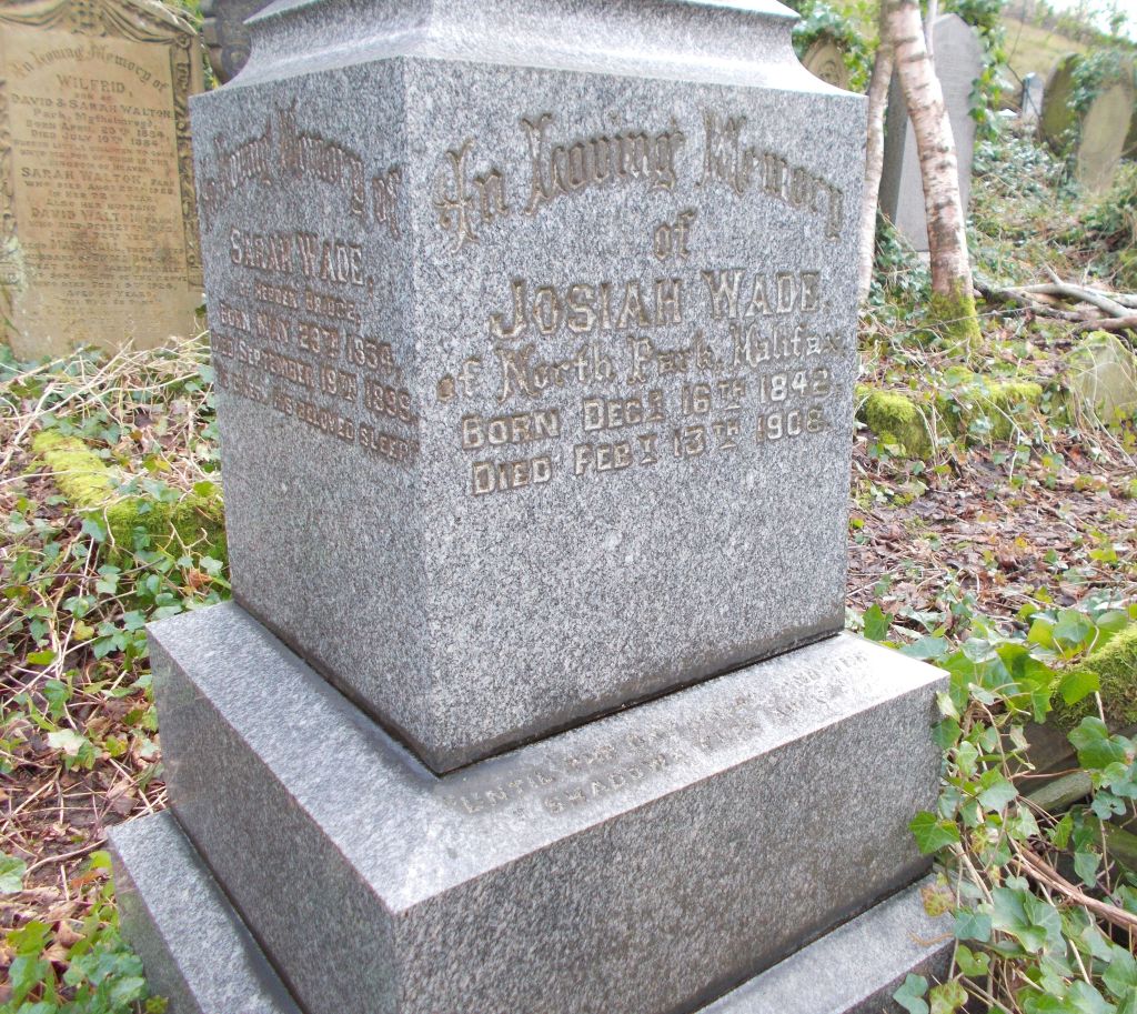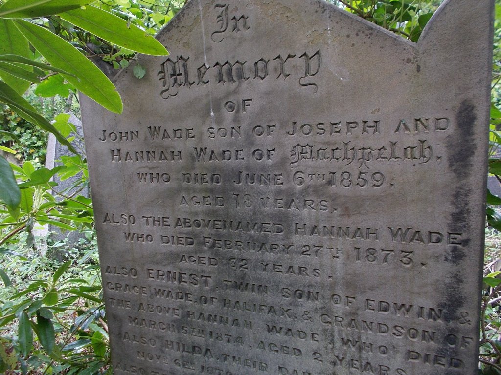 Also buried at Wainsgate are his parents William and Ann, his siblings Mary Clay, Hannah Ashworth and William Henry Clay, his son William and daughter Dora.