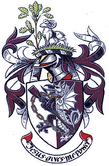 Crest: On a mount facing an Oak sapling acorned proper a Ram statant Argent belted Vert.