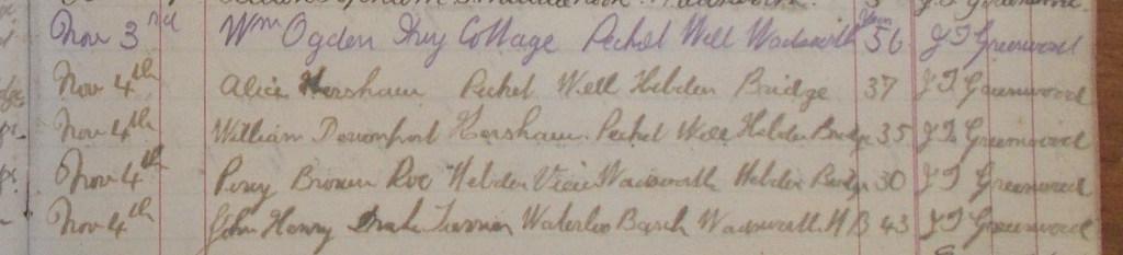 There is no record of anyone called John Thomas Greenwood being buried at Wainsgate, although the receipt book records plot F826 being bought by ‘Mr J.T. Greenwood’ (of Foot Kiln or Birchcliffe?) on 1st March 1922. The plot is unmarked and may be unused.