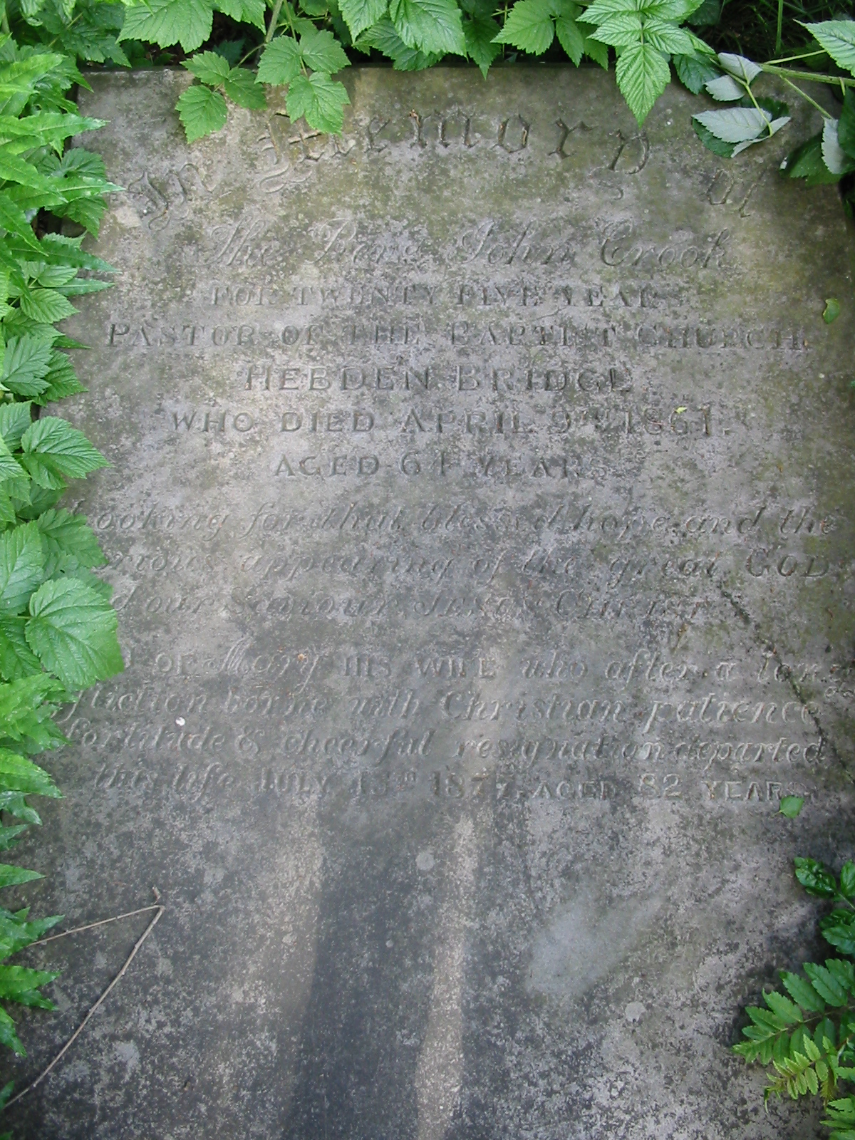 Minister at Ebenezer and Hope Baptist chapels, Hebden Bridge from 1841 to 1859. Buried at Wainsgate with his wife Mary.