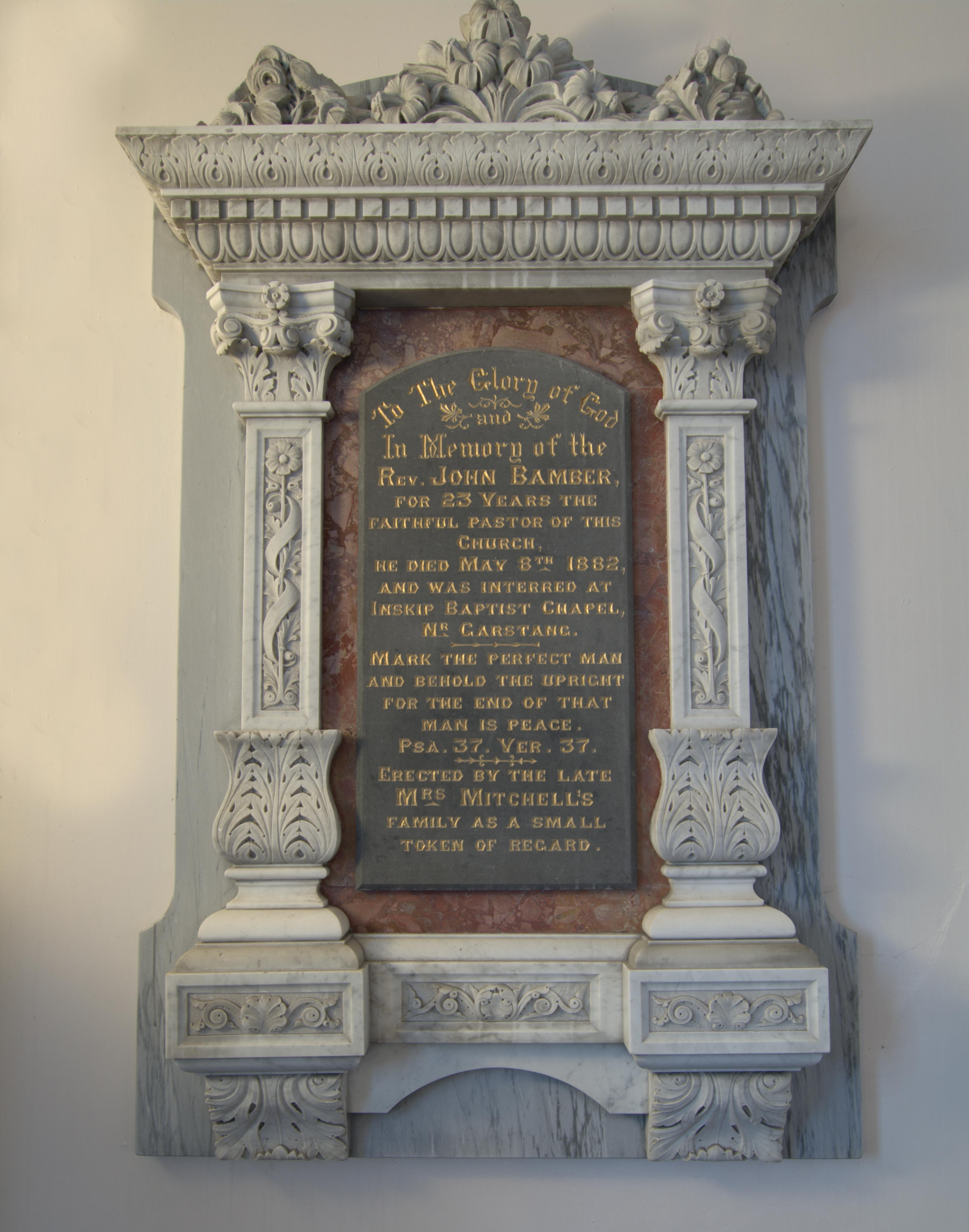 There is also a headstone commemorating John Bamber, minister at Wainsgate from 1855 to 1878, although he was buried at Inskip Baptist Chapel, Lancashire.