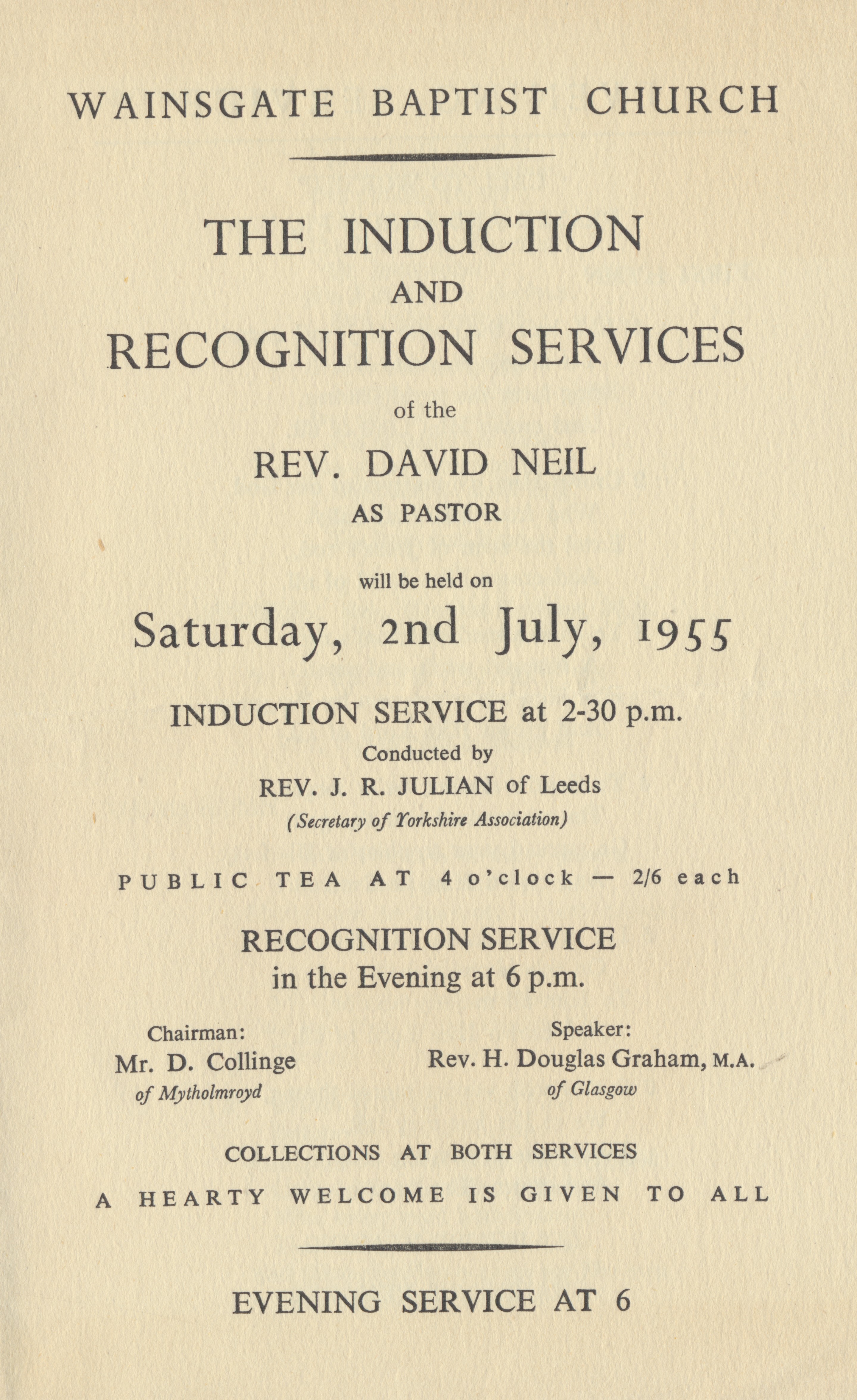 Came to Wainsgate from Glasgow, minister from 1955 to 1958. Assured by his new congregation that he would be ‘settling in a gradely country, among gradely folk’.