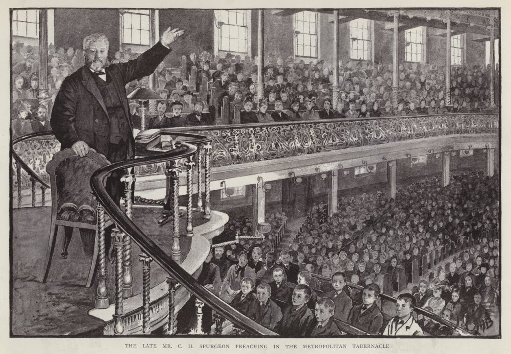 Charles Haddon Spurgeon preaching in the Metropolitan Tabernacle, London.