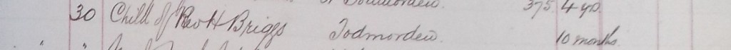 Henry Briggs, minister at Roomfield Baptist Church, Todmorden, bought two burial plots at Wainsgate: his infant daughter is buried in one of these, but the other plot may not have been used. Caroline, the infant daughter of William Henry Ibberson, pastor at Hope Chapel, Hebden Bridge, is also buried at Wainsgate.