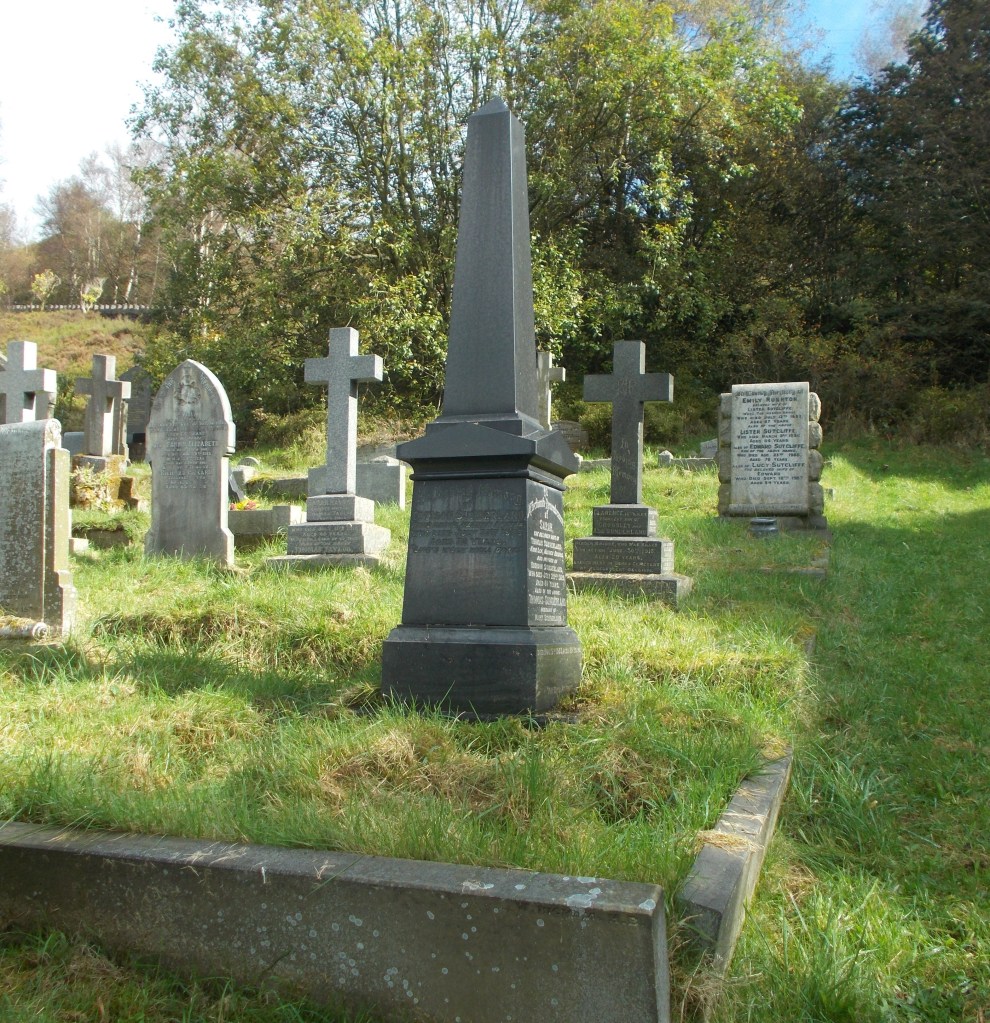 He is buried at Wainsgate in plot F800/801 with his wife Sarah (born Sutcliffe) and their only child, Eddison Sunderland.
