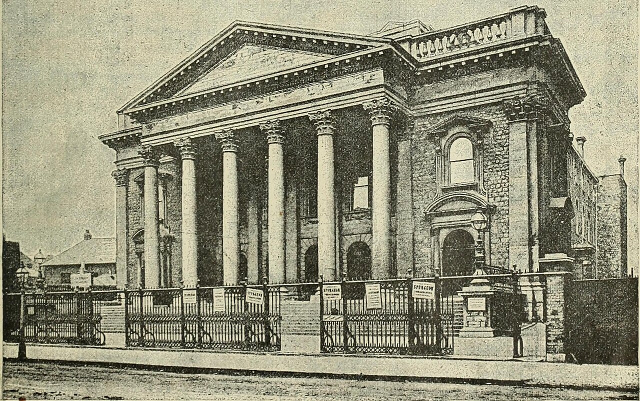 The Metropolitan Tabernacle is a Baptist church in Elephant & Castle, South London, that in 1881 had 5,500 members, and was at one time the largest independent Baptist congregation in the world. Its pastor from 1854 until 1892 was Charles Haddon Spurgeon (1834 1892) a prominent and influential English Particular Baptist minister, author, philanthropist and evangelist, known to many as the ‘Prince of Preachers’. He is known to have preached to a congregation of more than 23,000 people at the Crystal Palace in Sydenham in 1857: ‘the largest audience that has assembled in modern times to listen to the exhortations of a minister of the gospel’.