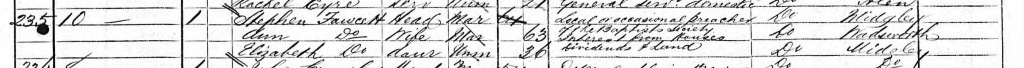 Stephen Fawcett (1806-1876), grandson of Rev. John Fawcett and son of John Fawcett jnr, is recorded in the 1871 census as being a ‘Local or occasional preacher of the Baptists Society’. He was living in Halifax with his wife Ann (daughter of John Cousin snr) and daughter Elizabeth, and his source of income is recorded as ‘Interest from Houses, Dividends and Land’.